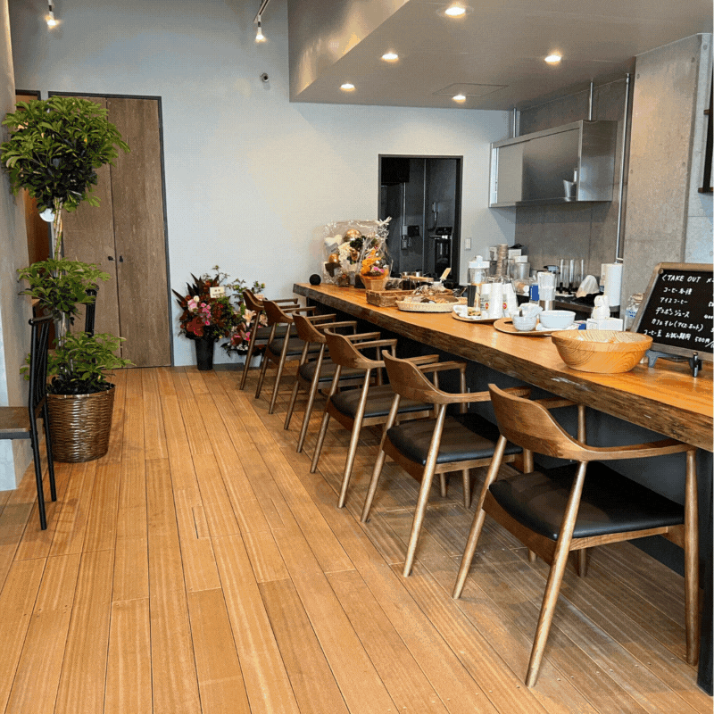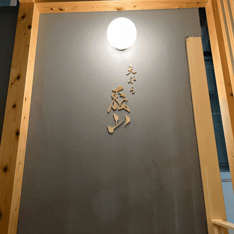 モルタル調の壁面に真鍮のサイン和の雰囲気と高級感を出す